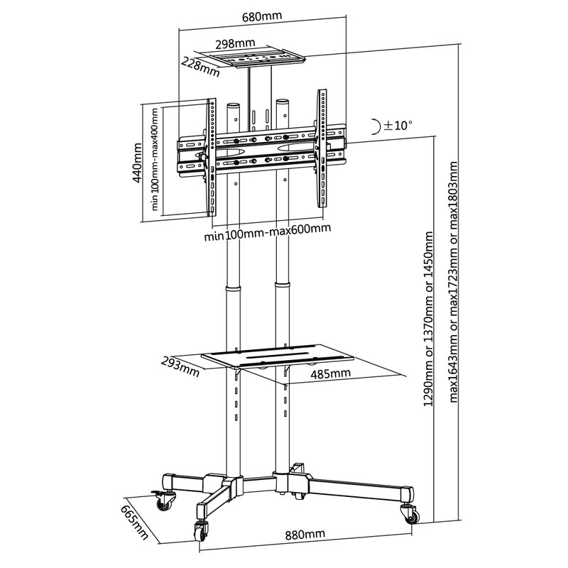 :: Rodízios para movimentar o pedestal sobre superfícies planas.