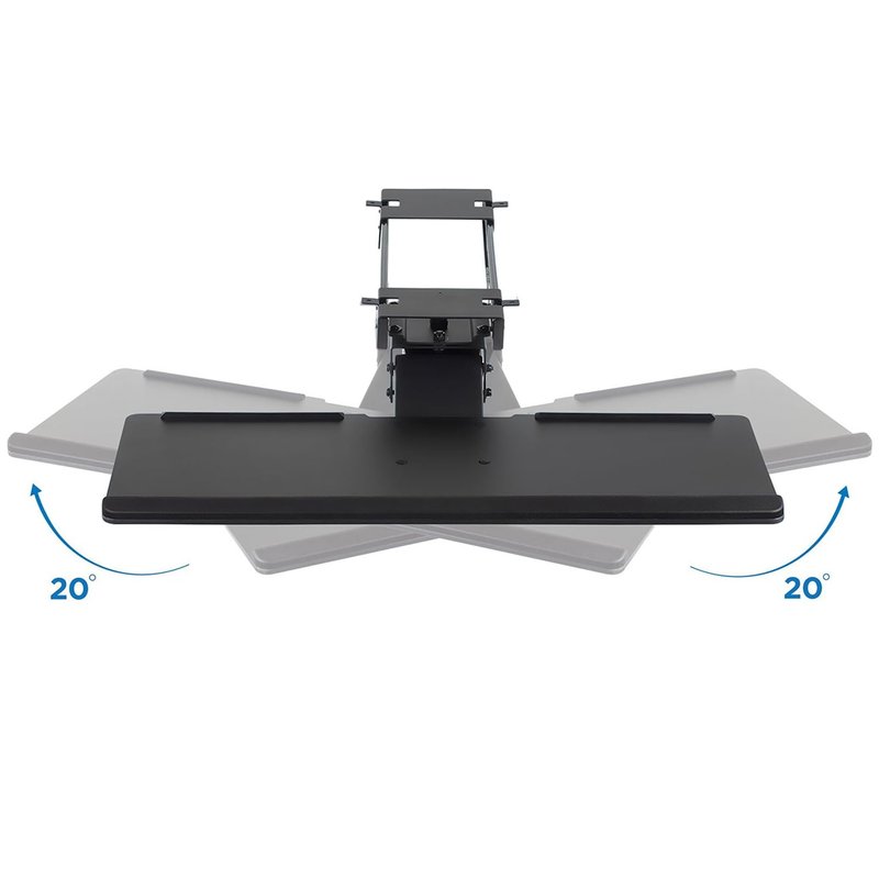 Giro de 20 graus para cada lado, inclinação de 15 graus para baixo ou para cima e ajuste de altura de 170mm permitem posturas confortáveis de braço e ombro durante a digitação.