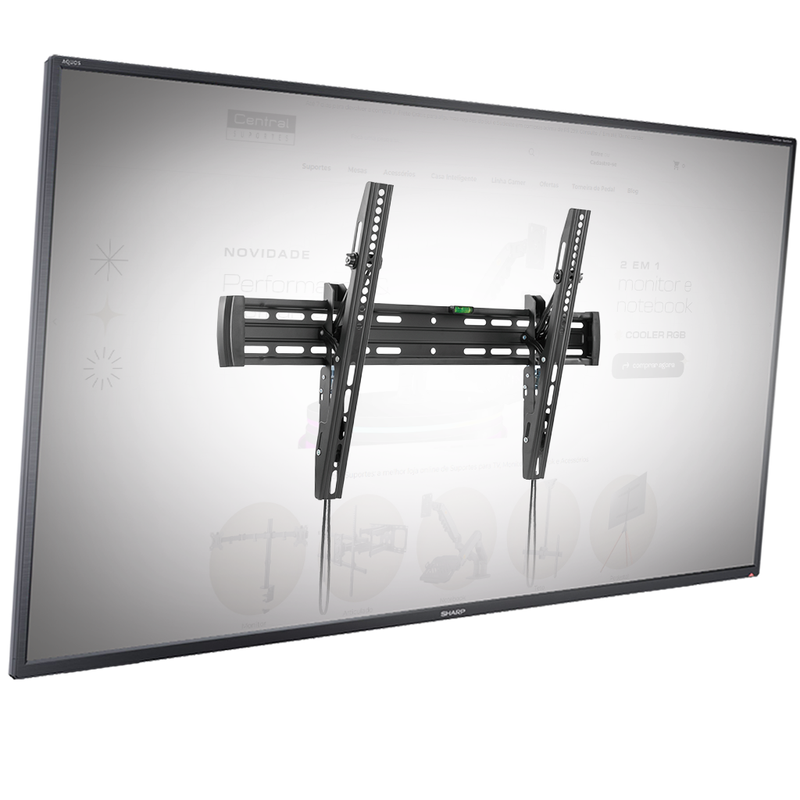 *** O ajuste de inclinação é feito sem o uso de chaves, basta posicionar a TV na inclinação desejada com as mãos e o suporte mantém ela. Também pode ser utilizado com a inclinação zerada, deixando a TV reta como um quadro na parede.
