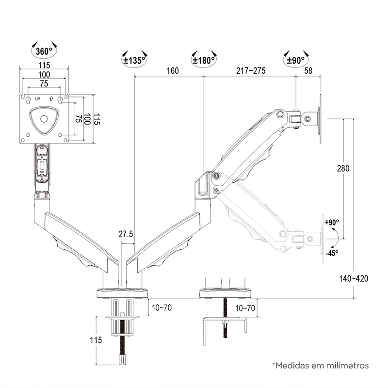 :: Altura máxima: 42 cm (medidos da mesa até o centro da fixação VESA);