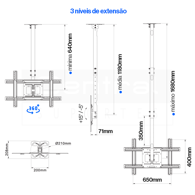 Suporte de Teto para TV SAV-6000 com giro horizontal da TV em 360°